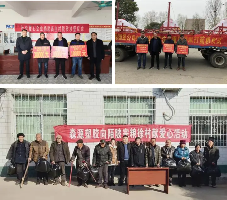 南陽森源塑膠更是一家極具社會責任感的企業(yè),2018年企業(yè)專門成立扶貧小組,企業(yè)領(lǐng) 導(dǎo)帶頭組織到扶貧村開展扶貧調(diào)研工作,圍繞社旗縣脫貧目標,以貧困村、貧困戶為工作對象進行認真細致的調(diào)研,真實掌握其實際情況,結(jié)合企業(yè)的優(yōu)勢,對貧困村、貧困戶進行幫扶工作。針對下洼鄉(xiāng)高莊村、下洼鄉(xiāng)閆莊村、朱集鄉(xiāng)袁老莊村進行3WPQ-1100型牽引式噴桿噴霧機的捐贈共:16臺價值507200元及現(xiàn)金捐贈10000元;三次向社旗縣孤兒救助協(xié)會進行捐贈合計50000元。企業(yè)在捐贈的同時,并對這些貧困戶進行技術(shù)指導(dǎo)和培訓(xùn),為增加貧困戶的收入打下良好基礎(chǔ)。南陽森源塑膠力爭在“同一片藍天下”為我們的幫扶對象創(chuàng)造出更美好的明天。