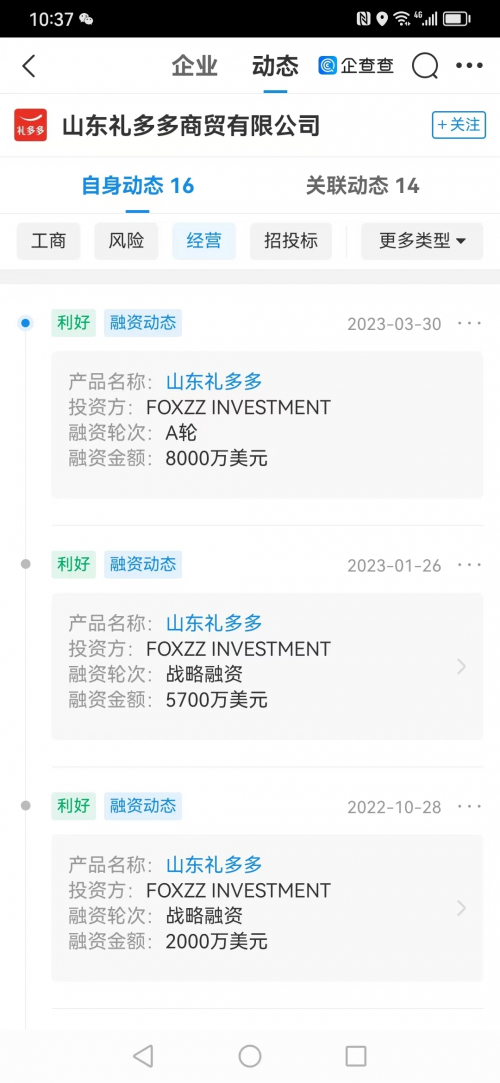 作為風投界的領 軍企業(yè),FOXZZ INVESTMENT歷來關注創(chuàng)新型企業(yè)和有潛力的行業(yè)。而禮多多能在如此短的時間內獲得來自FOXZZ INVESTMENT等多家風投公司的三輪融資,可見禮多多的品牌綜合實力、市場地位及盈利能力已獲資本市場高度認可。