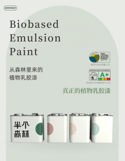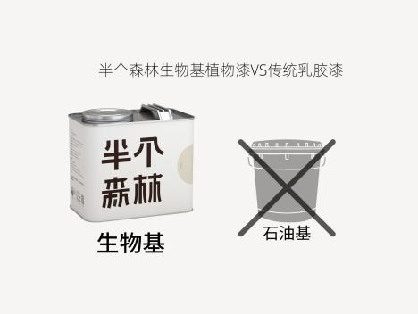 半個森林生物基植物乳膠漆采用生物基可降解技術(shù)提取天然植物原料,代替石油原料制成。這種植物漆材料源頭更環(huán)保,更趨向零甲醛VOC,讓您的家居空間更加安全健康。