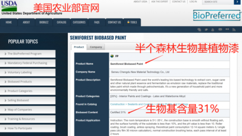 半個森林植物漆產(chǎn)品在美國農(nóng)業(yè)部有機認(rèn)證官網(wǎng)的備案可查。經(jīng)過美國農(nóng)業(yè)部生物基認(rèn)證,法國室內(nèi)空氣環(huán)境檢測A+認(rèn)證,半個森林產(chǎn)品在法國室內(nèi)空氣環(huán)境檢測中環(huán)保級別為A+最 高級別,超出法國出口的標(biāo)準(zhǔn)。
