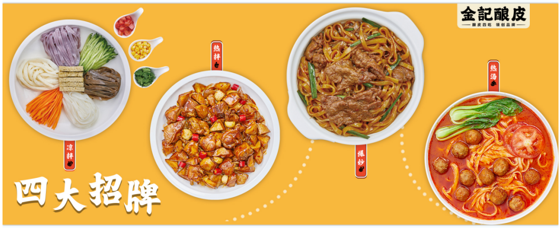 金記釀皮”創(chuàng)建于2005年,專注釀皮品類18年,是國內(nèi)首家在店面實(shí)現(xiàn)釀皮現(xiàn)做的品牌;金記釀皮不僅提升了釀皮行業(yè)制作的新標(biāo)準(zhǔn),同時解決了傳統(tǒng)前店后廠的重餐飲模式;金記首創(chuàng)的以釀皮四吃(涼拌、熱拌、爆炒、熱湯)為核心的差異化品類,突破了釀皮品類季節(jié)性的限制;并通過20多家直營門店的多業(yè)態(tài)、多店型盈利模型的打造、多年健康且持續(xù)的經(jīng)營,已在快餐領(lǐng)域形成了成功的品牌和商業(yè)模式,目前已與合生匯、印象城、龍湖天街、萬達(dá)、萬象匯、中海、金鷹、首創(chuàng)等知名商業(yè)達(dá)成合作,并繼續(xù)擴(kuò)大布局。