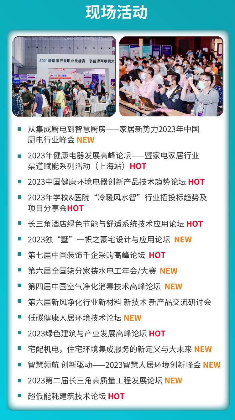 展會(huì)現(xiàn)場將全方位展示暖通空調(diào)、熱泵系統(tǒng)、壁掛爐系統(tǒng)、新風(fēng)系統(tǒng)、空氣凈化設(shè)備、凈水設(shè)備、飲水設(shè)備、智能家居、管道系統(tǒng)、智能建造、超低能耗建筑等領(lǐng)域的先進(jìn)設(shè)備及技術(shù),充分發(fā)揮行業(yè)展示窗口、橋梁、紐帶的作用,為專業(yè)觀眾帶來更多拓展產(chǎn)品、技術(shù)、服務(wù)和市場需求的機(jī)會(huì)。