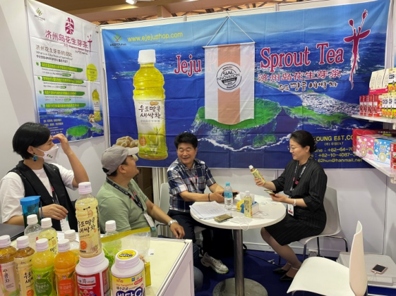 在此次國(guó)際食品博覽會(huì)中,除了宇英E&T外, Tamna食品、濟(jì)州柑橘餅干中國(guó)代理商也積極參與其中。與威海聯(lián)交集團(tuán)、上海曉菲盛安等約20多家買(mǎi)家進(jìn)行了出口洽談,目前不僅進(jìn)口產(chǎn)品,還進(jìn)行了OEM生產(chǎn)相關(guān)洽談,為今后促進(jìn)濟(jì)州商品出口打下了基礎(chǔ)??梢哉f(shuō),本次“牛島花生芽茶”的入選令濟(jì)州品牌們更加積極打入中國(guó)市場(chǎng)。