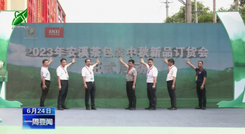開幕式上,出席活動的領(lǐng) 導(dǎo)嘉賓共同按下啟動鍵,宣布2023年安溪茶包裝新品訂貨會正式開幕。