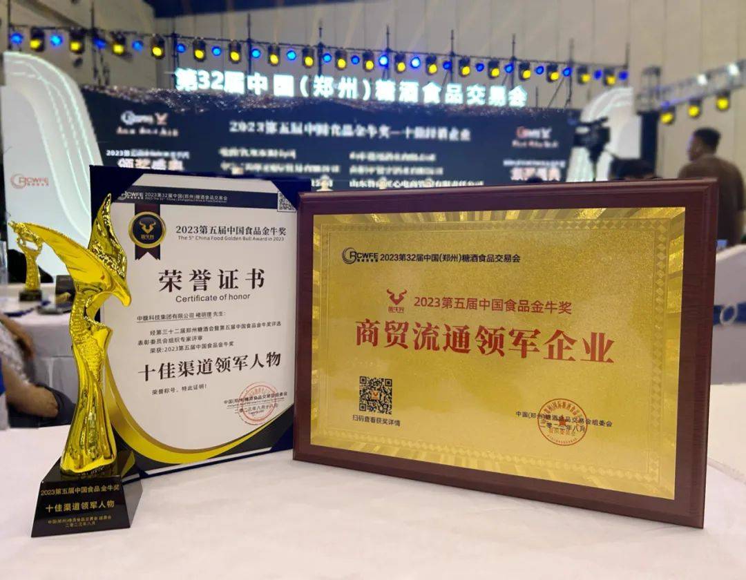 今日,2023第32屆鄭州糖酒會、2023第五屆中國食品金牛獎在鄭州國際會展中心舉行。在今年金牛獎評選中,中馥集團榮獲十佳渠道領 軍人物、商貿(mào)流通領 軍企業(yè)兩項大獎!