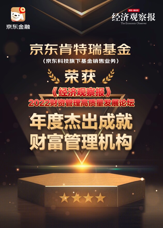 在 2022年12月30日京東肯特瑞獲得由《經(jīng)濟(jì)觀察報(bào)》主辦的“2022財(cái)資管理高質(zhì)量發(fā)展論壇”所頒發(fā)的“年度杰出成就財(cái)富管理機(jī)構(gòu)”獎(jiǎng)項(xiàng)。此次獲得殊榮,也正是因?yàn)樵谛碌呢?cái)富管理時(shí)代需求下,堅(jiān)持踐行京東經(jīng)營理念,致力于用戶視角的多元化產(chǎn)品布局、持續(xù)進(jìn)階的全周期投顧化服務(wù),以及專業(yè)有溫度的用戶體驗(yàn),非貨公募基金銷量保持快速增長,以優(yōu)秀的業(yè)績(jī)贏得了行業(yè)內(nèi)的廣泛關(guān)注與肯定。