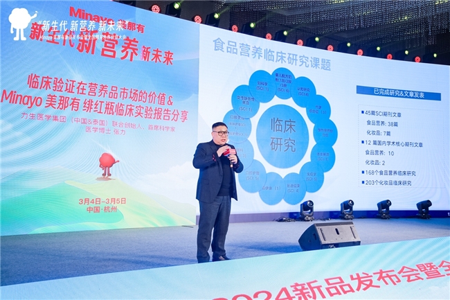 富鐵軟糖和緋紅瓶是Minayo美那有典型的兩款爆款產(chǎn)品,而它們的成功也見(jiàn)證了Minayo美那有對(duì)功能性食品市場(chǎng)需求的精準(zhǔn)把握。中國(guó)功能性食品消費(fèi)人群中,消費(fèi)者對(duì)有補(bǔ)血補(bǔ)氣有較強(qiáng)的需求,女性消費(fèi)者對(duì)美容養(yǎng)顏也十分關(guān)注。為了給消費(fèi)者提供一款值得信賴的產(chǎn)品,Minayo美那有始終秉承科學(xué)與創(chuàng)新的產(chǎn)品研發(fā)規(guī)則,并對(duì)產(chǎn)品展開(kāi)臨床試驗(yàn)作為循證支持。諸如,Minayo美那有銷量王牌富鐵軟糖獲得了中國(guó)臨床試驗(yàn)報(bào)告《關(guān)于富鐵軟糖產(chǎn)品對(duì)年輕女性貧血和氣血相關(guān)癥狀療效改善的臨床研究(RCT)》,是市面上首個(gè)擁有人體臨床報(bào)告的富鐵功能性食品;值得一提的是,在本次發(fā)布會(huì)中,力生醫(yī)學(xué)集團(tuán)(中國(guó)&泰國(guó))的聯(lián)合創(chuàng)始人張力博士也以《美那有富鐵SOD酵母飲對(duì)女性缺鐵性貧血和皮膚及氣血改善的臨床研究》報(bào)告為例,著重強(qiáng)調(diào)了循證對(duì)營(yíng)養(yǎng)品市場(chǎng)的重要性。