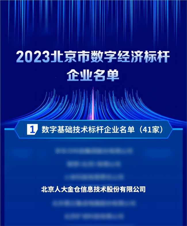 2月29日,2023北京市數(shù)字經(jīng)濟標桿企業(yè)評價報告發(fā)布會在京圓滿召開。憑借企業(yè)技術(shù)能力突出,產(chǎn)品水平具有顯著創(chuàng)新性、先進性、示范性和行業(yè)代表性,人大金倉獲評“2023北京市數(shù)字經(jīng)濟標桿企業(yè)-數(shù)字基礎(chǔ)技術(shù)標桿企業(yè)”。