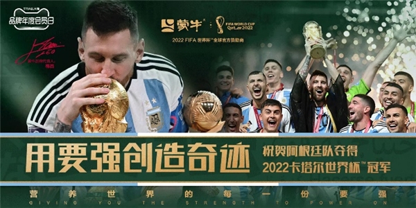 2022年卡塔爾足球世界杯于2022年12月18日在卡塔爾落下帷幕,這一場被譽為球王之戰(zhàn)的決賽過后,新球王梅西加冕聚焦全球目光,而遠在中國的蒙牛似乎才是真正的贏家。世界杯期間,關(guān)于蒙牛乳業(yè)的熱搜接連不斷,消費者在各類新興觸媒和平臺內(nèi),也主動和被動地持續(xù)參與進這次世界杯營銷大戰(zhàn)役中。