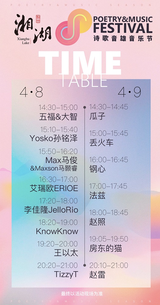 2023年4月8日--9日,杭州蕭山湘湖將迎來一場盛況空前的音樂節(jié)--“杭州湘湖詩歌音雄音樂節(jié)”。趙雷、趙照、Tizzy T、王以太、房東的貓、丟火車、know know、李佳隆、法茲、鋼心、艾瑞歐ERIOE、Max馬俊&Maxson馬顥睿、Yosko孫銘澤、瓜子樂隊、五福樂隊、大智等16組音樂人/樂隊整裝待發(fā),將用音樂唱響杭城春天。