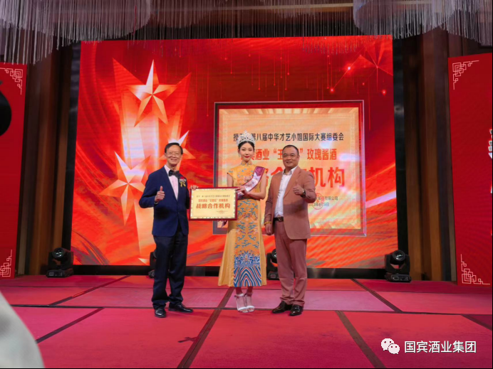 廣東國(guó)賓酒業(yè)集團(tuán)與中華才藝小姐國(guó)際大賽組委會(huì)舉行簽約儀式。并授予中華才藝小姐國(guó)際大賽組委會(huì)“國(guó)賓酒業(yè)玉皇后玫瑰醬酒戰(zhàn)略合作伙伴”