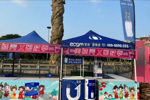 本次在大嶺山舉辦的荔枝節(jié)除了圍繞“音樂狂歡”、“燒鵝派兌”、“城市露營”、“創(chuàng)意集市”、“莞荔天團漢服秀”等大嶺山鎮(zhèn)本土文化活動外。在會場也呈現(xiàn)了一些新的產(chǎn)品,尤其是由東莞市廣美食品飲料有限公司出品的“宜純蒸餾水”引起了市民的注意,閃亮出圈。