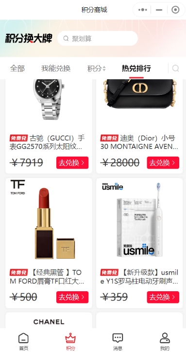 沒錯(cuò),你沒看錯(cuò),就是大牌!積分免費(fèi)兌大牌!只要你積分足夠,大牌好物免費(fèi)兌!