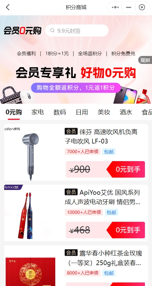 返的積分能免費(fèi)兌換各種好禮,也就是說你只花了一份錢,不僅購(gòu)買到你想要的東西,更能額外得到一份等額積分兌換的好物,好物0元搞到手!