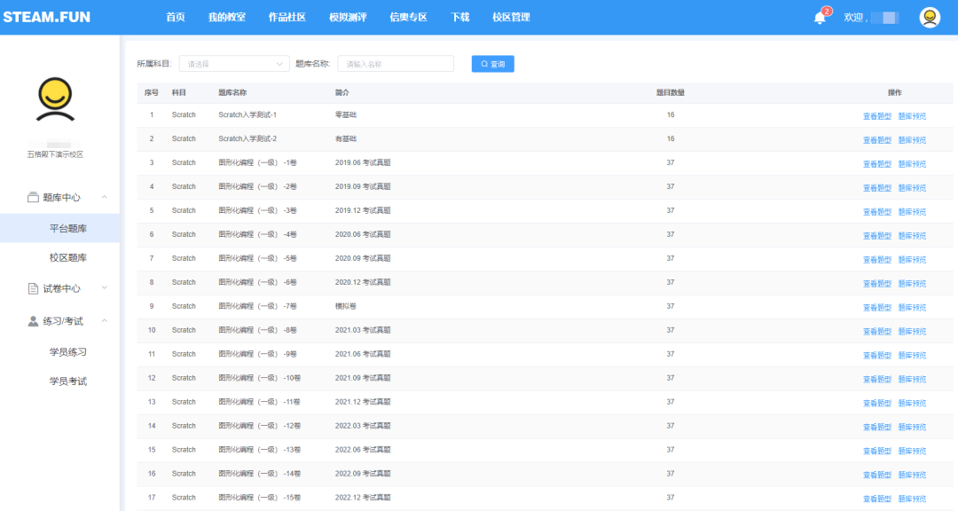 在平臺上,五格殿下有編程考級海量題庫,而且會定期更新新考級題目,便于機構學員在考試前能多刷高質量習題!