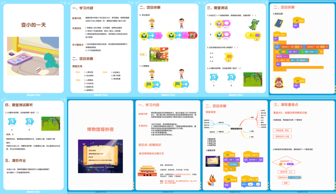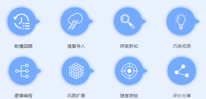 課程內容是根據兒童獲取知識的過程和學習效果而設計與研發(fā)的,充分遵循孩子的認知規(guī)律!并通過前情回顧、情景導入、探索新知、巧練拓思等八大課堂環(huán)節(jié),來讓校區(qū)學員更好的吸收編程知識!