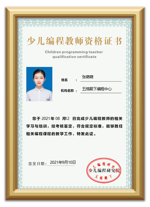 最后參加五格殿下的結業(yè)測評考核,考核合格,會獲得由五格殿下頒發(fā)的編程資格證書。