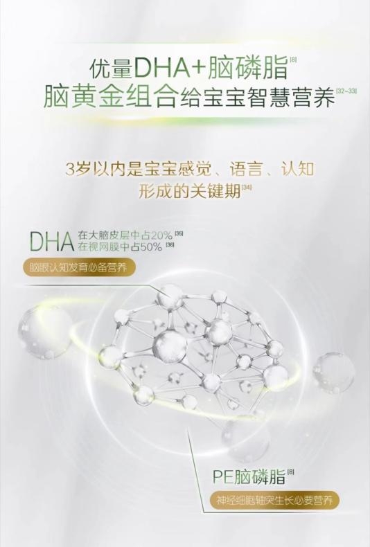 相關(guān)研究表明,0~3歲是寶寶大腦發(fā)育的黃金時(shí)期,是寶寶對未來認(rèn)知、社交和情感發(fā)展奠定基礎(chǔ)的重要階段。因此想要幫助寶寶更好地激發(fā)大腦潛能,家長在寶寶的喂養(yǎng)方面需要格外重視,以避免寶寶營養(yǎng)攝入不足產(chǎn)生影響。而金領(lǐng)冠塞納牧作為一款專業(yè)的嬰幼兒配方奶粉,其含有的智慧營養(yǎng)組合DHA和腦磷脂的作用與功效也受到了廣泛關(guān)注。這兩種成分在寶寶大腦發(fā)育中扮演著重要的角色,可以幫助寶寶獲得更好的智力、認(rèn)知能力和行為習(xí)慣。
