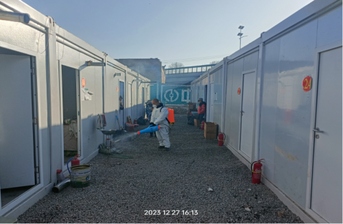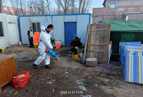 2023年12月27日下午14:00物資入庫(kù)后,在縣疾病預(yù)防控制中心指揮部的統(tǒng)一安排下,環(huán)球應(yīng)急救援西部指揮中心馮建武指揮長(zhǎng),紀(jì)委書記植鵬的帶領(lǐng)消殺人員植、陳勇、馬玉蘭、王文杰、李金鵬、溫世卓、張翔、馮佳博、曾建成、齊洪濤、賀明等同志,顧不上休息,立即來(lái)到積石山縣劉集鄉(xiāng),投入到各村安置點(diǎn)的環(huán)境消殺,對(duì)集中安置點(diǎn)地面、垃圾堆、廁所等易生病菌的地方進(jìn)行噴曬,殺滅病菌,對(duì)安置點(diǎn)板房門、窗、屋內(nèi)等空間進(jìn)行噴曬,預(yù)防病菌生長(zhǎng)。