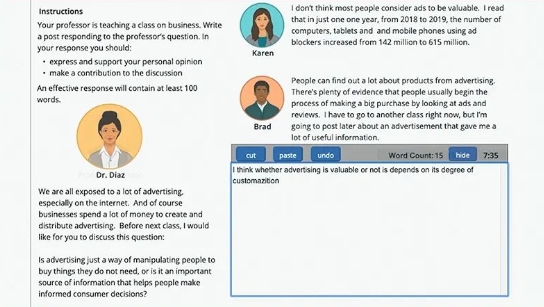最后再來(lái)看看寫(xiě)作部分。托福的“獨(dú)立寫(xiě)作”部分在改革后變成了“學(xué)術(shù)討論寫(xiě)作”,要求考生針對(duì)指定話(huà)題闡述觀點(diǎn)并提供論據(jù),該有的學(xué)術(shù)能力依舊不可缺少。同時(shí),這一部分還會(huì)涉及聽(tīng)力和閱讀能力考查,對(duì)考生的綜合能力要求較高。相較之下,雅思略容易一些,只要抓住題干信息,觀點(diǎn)明確不跑題,基本上不會(huì)出現(xiàn)大問(wèn)題。