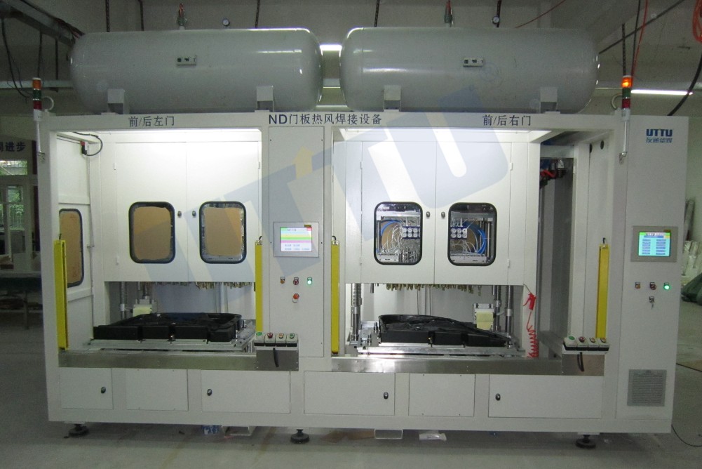 伴隨著新能源汽車產(chǎn)業(yè)的迅速發(fā)展,多年來友通塑焊在汽車內(nèi)外飾超聲波焊接、熱鉚/熱風焊接、熱板/紅外焊接、以及汽車保險杠門板開孔和焊接、新能源汽車輔助油箱無塵打孔/特種焊接、多工藝混合型開孔/焊接柔性通用型單機及綜合流水線設備、機器人輔助設備領域積累了豐富的研發(fā)和實踐經(jīng)驗。自主研發(fā)通用型標準化熱鉚/熱風焊接/超聲波焊接多功能、多工位、雙層交替工作臺、機器人運行、一鍵換模等先進技術,解決了汽車、家電等行業(yè)設備投入大、改型生產(chǎn)時原有設備難于重復利用等難題。2016年開始研發(fā)熱風焊接工藝并成功介入產(chǎn)品量產(chǎn),目前已量產(chǎn)的熱鉚/熱風焊接設備具備“柔性化、自動化、智能化”等優(yōu)點。現(xiàn)已量產(chǎn)的產(chǎn)品有各類自動換模熱板/紅外焊接設備、各類自動換模熱鉚/熱風焊接雙工能設備、各類自動換模超聲波焊接設備、各類自動換模門板儀表板機器人超聲波焊接設備、自動換模門板熱鉚/熱風焊接/超聲波焊接混合型快捷流水線一體機、各類自動換模保險杠油箱開孔/焊接流水線設備等,暢銷國內(nèi)外多個國家地區(qū),在汽車配件生產(chǎn)領域獲得諸多知名領 軍企業(yè)好評。