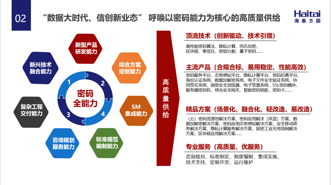 海泰方圓安全研發(fā)中心總經(jīng)理Frank安進(jìn)行了《密碼為數(shù)字政府筑牢數(shù)字安全屏障》的主題演講。Frank安表示,《國(guó)務(wù)院關(guān)于加強(qiáng)數(shù)字政府建設(shè)的指導(dǎo)意見》的發(fā)布,明確了國(guó)家對(duì)數(shù)字政 府建設(shè)的決心與方向。近期發(fā)布的《數(shù)字中國(guó)建設(shè)整體布局規(guī)劃》中,提出要強(qiáng)化數(shù)字技術(shù)創(chuàng)新體系和數(shù)字安全屏障“兩大能力”建設(shè),而密碼將能夠?yàn)閿?shù)字政 府中的數(shù)字安全屏障能力建設(shè)提供最有利的技術(shù)支撐。海泰方圓二十年來在密碼領(lǐng)域耕耘不怠,構(gòu)建了頂層咨詢規(guī)劃能力、頂流技術(shù)攻關(guān)能力、密碼產(chǎn)品和服務(wù)能力、工程實(shí)踐交付能力等密碼全能力,融合行業(yè)場(chǎng)景提供專業(yè)的密碼產(chǎn)品和定制化密碼應(yīng)用方案。隨后,F(xiàn)rank安分享了海泰方圓典型應(yīng)用案例。