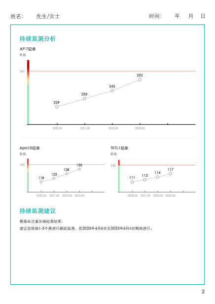 潘多姆檢測臨床應(yīng)用定 位十分明確,為普通人群提供癌癥預(yù)防整體化解決方案。通過持續(xù)定期進行潘多姆檢測,監(jiān)測全身腫瘤病變發(fā)展,可以實現(xiàn)全身腫瘤預(yù)防監(jiān)測。另一方面還可以在潘多姆檢測達到陽性(AP-T≥260且Apo10≥140)時即視為腫瘤告警,有必要進行全身PET-CT檢查,及時溯源定 位。起到及時告警、全面溯源的作用。全身腫瘤預(yù)防監(jiān)測服務(wù)是蔚恩健康在腫瘤早期篩查檢測技術(shù)領(lǐng)域的一次重要突破,將為腫瘤患者帶來更多的福音。