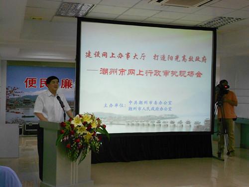 市委副書記蔡澤輝,市委常委、常務(wù)副市長(zhǎng)方利旭,市委常委、市委秘書長(zhǎng)張帆,市政協(xié)副主席肖裕欽,市紀(jì)委副書記、市監(jiān)察局局長(zhǎng)林躍,市政府秘書長(zhǎng)丁應(yīng)亮和市委、市政府有關(guān)副秘書長(zhǎng)等出席此次現(xiàn)場(chǎng)會(huì)。各縣(區(qū))委書記或縣(區(qū))長(zhǎng)(管委會(huì)主任);各行政審批職能部門的主要領(lǐng)導(dǎo);潮州港經(jīng)濟(jì)開發(fā)區(qū)管委會(huì)、電信潮州分公司、市行政服務(wù)、市委機(jī)要局、市信息管理辦公室的主要領(lǐng)導(dǎo);企業(yè)及個(gè)人代表也參加網(wǎng)上行政審批系統(tǒng)的推廣現(xiàn)場(chǎng)會(huì)。
