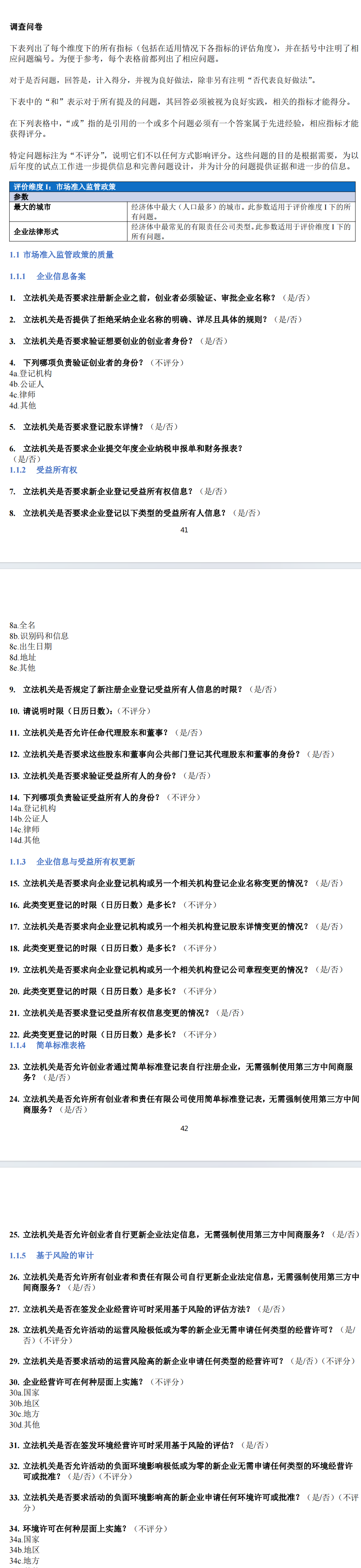 2023年末,世界銀行公布B-READY方法論英文版,本文是其中市場準入部分的調(diào)查問卷中文翻譯版,其他指標問卷將繼續(xù)推出,可關注本公眾號,第一時間接收相關推送文章。