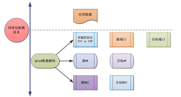 DPI(Deep Packet Inspection)深度包檢測技術(shù)是在傳統(tǒng)IP數(shù)據(jù)包檢測技術(shù)(OSI L2-L4之間包含的數(shù)據(jù)包元素的檢測分析)之上增加了對(duì)應(yīng)用層數(shù)據(jù)的應(yīng)用協(xié)議識(shí)別,數(shù)據(jù)包內(nèi)容檢測與深度解碼。