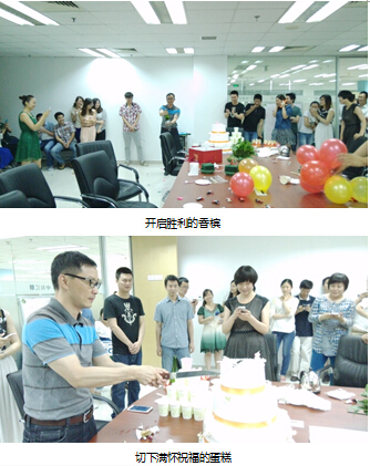 最后,伴隨著眾人的期待,胡總打開(kāi)了象征勝利的香檳,在公司發(fā)展十五周年,搬遷新址的時(shí)刻,為員工切下祝福的蛋糕,感謝每一位為公司付出的匯聯(lián)人,感謝他們的堅(jiān)持,感謝他們的努力,感謝他們的信任。