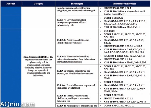 識(shí)別(IDENTIFY)分類的具體內(nèi)容 ,我們可以看到COBIT、ISO/IEC 27001等信息安全認(rèn)證被反復(fù)提及