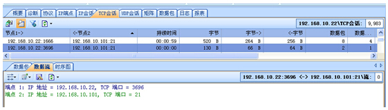 我們定位192.168.10.22這個(gè)IP,然后查看TCP會(huì)話選項(xiàng)。如下圖: