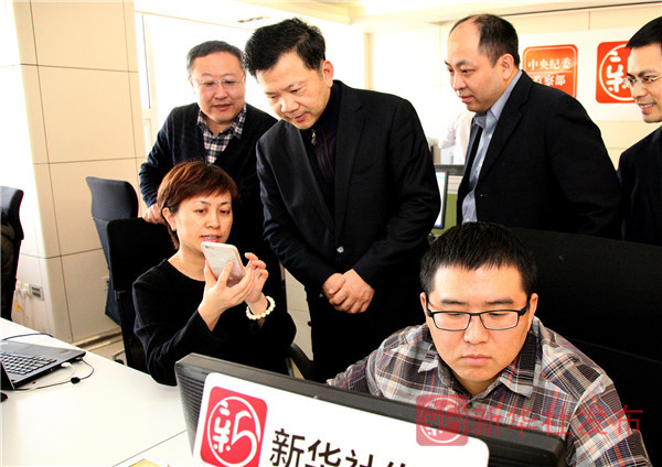 ↑1月11日,新華社副社長慎海雄到新華社新媒體中心,檢查中央紀委監(jiān)察部網(wǎng)站客戶端升級改版準備工作。中央紀委監(jiān)察部網(wǎng)站客戶端由新華社新媒體中心承建,經(jīng)新華社技術局等各部門通力協(xié)作,于今年元旦上線試運行,廣受各界好評。