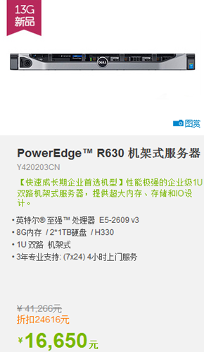 PowerEdge R630機架式服務器原價41,266元,現<標配專享優(yōu)惠>即購立減24,616元! 現價16,650起