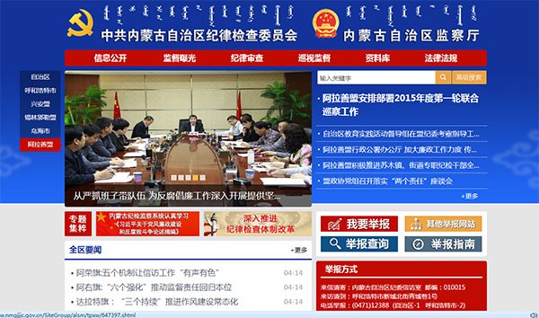 內(nèi)蒙古紀檢監(jiān)察網(wǎng)站截圖