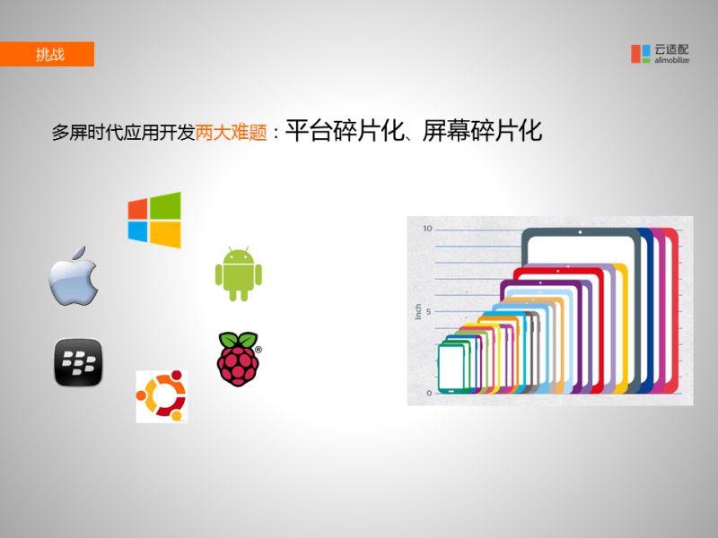 但在多屏互聯(lián)網(wǎng)時(shí)代,開發(fā)應(yīng)用將會面臨兩個(gè)非常頭疼的問題。一個(gè)是屏幕碎片化,一個(gè)是平臺碎片化。