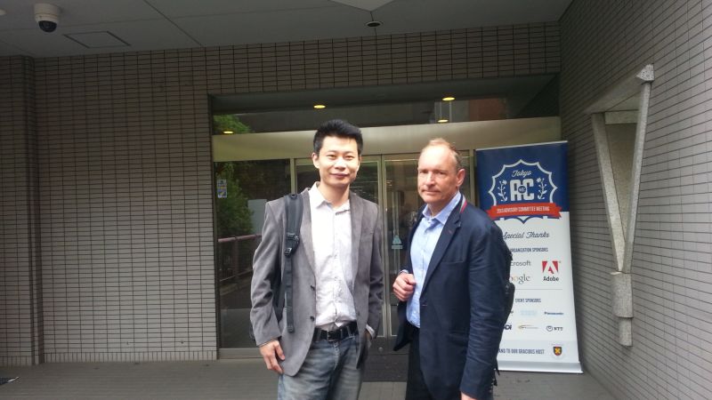在這里分享一張我和互聯(lián)網(wǎng)發(fā)明人TBL的合影,這是我們在日本討論HTML互聯(lián)網(wǎng)標(biāo)準(zhǔn)開會的照片。他發(fā)明了互聯(lián)網(wǎng)技術(shù),設(shè)計(jì)了世界上第一個(gè)瀏覽器,設(shè)計(jì)了HTML開發(fā)語言。