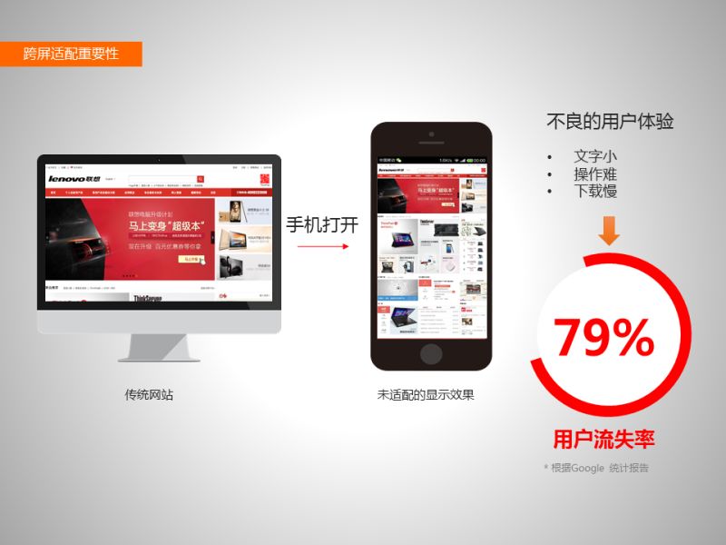現(xiàn)在的網(wǎng)站一般是由PC開發(fā)的,在手機(jī)上打開文字和圖片很小,要用雙手去縮放,這個(gè)用戶體驗(yàn)是非常差的,會導(dǎo)致79%的用戶直接離開??缙猎苹谧灾餮邪l(fā)的國際專利技術(shù),只要在網(wǎng)站上加一串代碼,就可以把您的PC網(wǎng)站直接轉(zhuǎn)化成HTML5的移動(dòng)應(yīng)用,并且網(wǎng)址不改變、內(nèi)容實(shí)時(shí)更新。大家可以在手機(jī)上打開www.gov.cn 體驗(yàn)一下中國政府網(wǎng)使用云適配的效果。網(wǎng)址不改變是非常重要的,老百姓可以按照原來在PC上使用政務(wù)系統(tǒng)的方式在手機(jī)上直接訪問政務(wù)系統(tǒng)。