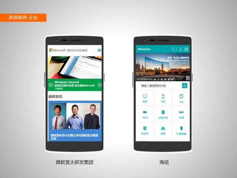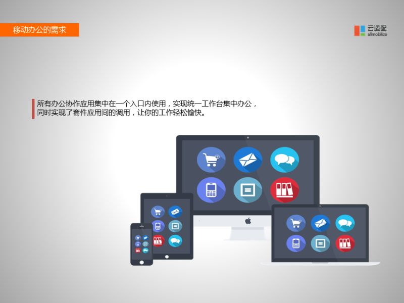 剛才主要講的是對外網(wǎng)站的跨屏產(chǎn)品。接下來講一下對移動(dòng)辦公系統(tǒng)的相關(guān)產(chǎn)品。