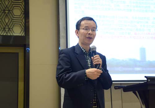 港中旅華貿(mào)國際物流副總經(jīng)理兼CIO、北大CIO同學(xué)會華東分會會長陳衛(wèi)星發(fā)表致辭。他說到:“北大CIO班”是一個平等、開放、信息共享、互動的平臺,在聆聽主題演講的同時,他希望大家能在不同行業(yè)的跨界交流中互相學(xué)習(xí),有更多的商機(jī)、更多的合作共贏,能夠提升自我價值。