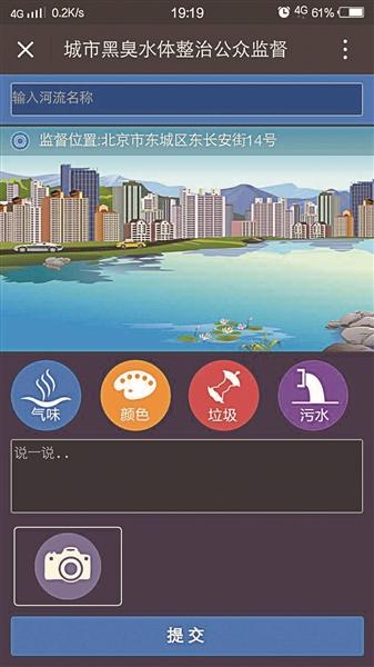 而由環(huán)保部和住建部聯(lián)合創(chuàng)建的微信公眾號“城市水環(huán)境公眾參與”,除了設(shè)置有監(jiān)督舉報黑臭水體的功能,還可通過微信進(jìn)行自動定位,工作人員可根據(jù)舉報位置迅速來現(xiàn)場調(diào)查。