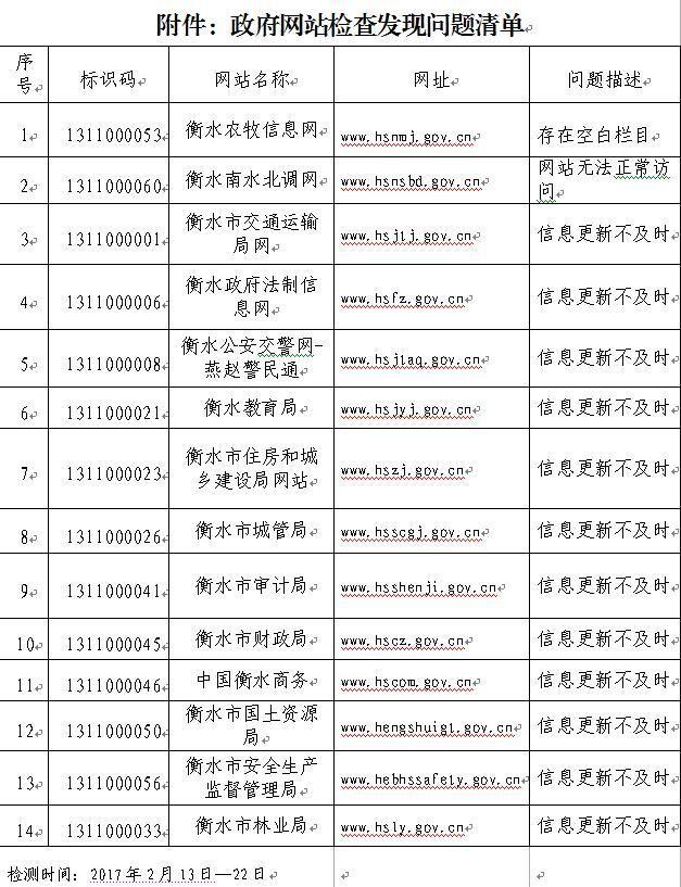 附件:衡水市政府網(wǎng)站檢查發(fā)現(xiàn)問題清單