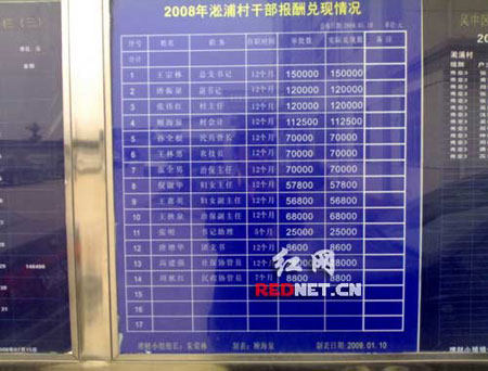 網(wǎng)友貼出的“淞浦村干部報酬兌現(xiàn)情況”