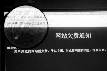 讓他感覺不可思議的是,網(wǎng)站www.pdsxf.gov.cn頁面紅底白字寫著一則欠費通知:“尊敬的用戶:您所瀏覽的網(wǎng)站因欠費,予以關閉,對此影響您的瀏覽,深表欠(歉)意”,落款日期為2008年12月。