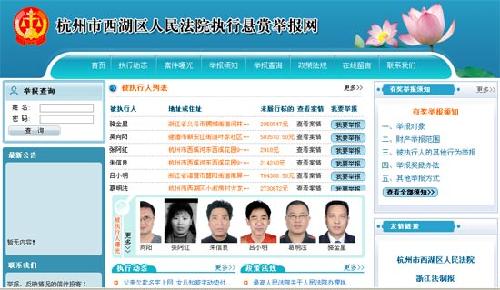 日前,繼河北行唐縣紀(jì)委成立全國首家反腐網(wǎng)絡(luò)輿情采集中心后,浙江省杭州市西湖區(qū)人民法院亦推出了全國首家執(zhí)行懸賞舉報(bào)網(wǎng)。據(jù)悉,此舉是希望通過網(wǎng)絡(luò)高科技信息平臺(tái),借助社會(huì)力量破解“執(zhí)行難”的一項(xiàng)新舉措。