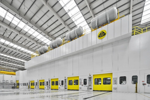 值得一提的是,在換色系統(tǒng)上,工廠涂裝車間通過走珠輸調(diào)漆換色系統(tǒng)實現(xiàn)快速換色,提升供漆換色效率,最短10分鐘換色效率,改變顏色更方便;同時供漆系統(tǒng)換色過程中使用的油漆可實現(xiàn)98%油漆回收比例,從而降低排放及對環(huán)境的影響。不僅如此,由于汽車生產(chǎn)過程中,涂裝車間能耗約占整個工廠總能耗的50%。路特斯全球智能工廠涂裝車間全面采用環(huán)保工藝和環(huán)保材料,通過節(jié)能措施降低排放將對環(huán)境的影響。在廢氣VOC處理方面,工廠涂裝車間全面采用環(huán)保工藝和環(huán)保材料,廢氣中揮發(fā)性有機化合物VOC處理效率可達到99.8%,VOC排放濃度低于12毫克/立方米,遠低于國際數(shù)據(jù)。在管理數(shù)字化方面,工廠建立了能源管理體系,使用EMS能源管理系統(tǒng),實現(xiàn)一二級計量全覆蓋,實時監(jiān)控工廠能耗情況,有效協(xié)助分析能耗異常。此外,還應(yīng)用虛擬調(diào)試技術(shù),減少實際調(diào)試過程中的能源消耗,提高車型導(dǎo)入質(zhì)量和效率。在生產(chǎn)智能化上,工廠設(shè)備精準開關(guān)機,減少設(shè)備待機能耗。此外,工廠設(shè)備還追求節(jié)能化,全伺服沖壓線,降低沖壓工藝報廢率及能耗,提升材料利用率。調(diào)漆間空調(diào)管道改造實現(xiàn)冷凍水共用,減少專用冷凍機開啟。物流低碳化方面,廠內(nèi)物流全面電動化;自動、智能、高效的貨到人智能小車系統(tǒng)。同時,在流程標準化上,廠內(nèi)的耗電設(shè)備定時關(guān)閉,避免待機能耗。另值得一提的是,路特斯的產(chǎn)品也采用環(huán)保材料。譬如,路特斯Eletre整車可再利用率及可回收利用率均優(yōu)于法規(guī)要求,其中可再利用率超過89%;Eletre整車全部內(nèi)飾材質(zhì)均達到歐洲REACH法規(guī)要求,所有內(nèi)飾的粘接劑均采用綠色環(huán)保的水性或熱熔粘接劑等。