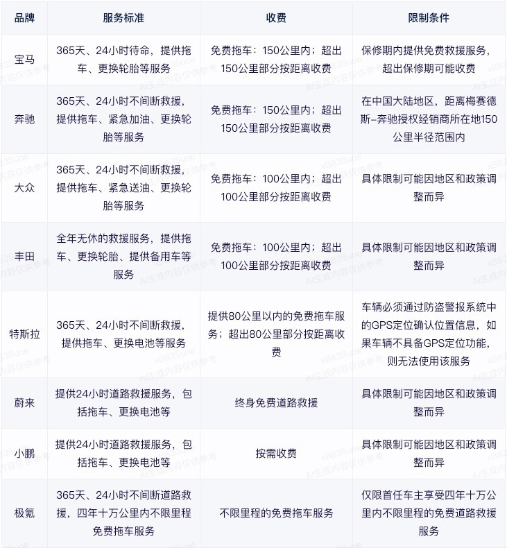最后是目前一些車企的救援服務(wù)的明細,極氪售后救援服務(wù)真的是一枝獨秀。