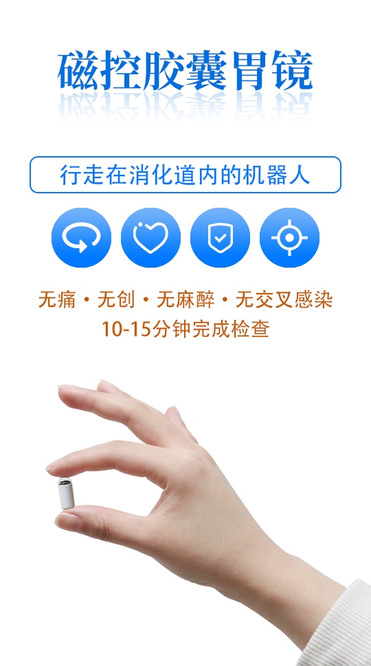 相對于胃腸鏡檢查,磁控膠囊內(nèi)鏡檢查具有諸多優(yōu)勢,如對胃內(nèi)檢查quan面有效;檢查過程安全舒適;檢查過程方便快捷;影像資料留存方便。此外,磁控膠囊內(nèi)鏡不但可以進(jìn)行胃腸疾病的檢查,還可以檢查小腸疾病,填補(bǔ)了胃腸鏡檢查發(fā)現(xiàn)小腸疾病的空白,為病因不明確的消化道出血病人找到新的突破口,給廣大患者帶來福音。