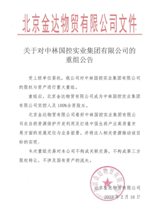 近日,原武警管理的北京金達物貿(mào)有限公司正式發(fā)布公告,對中林國控實業(yè)集團有限公司進行股權與資產(chǎn)的重大重組。